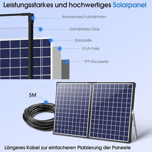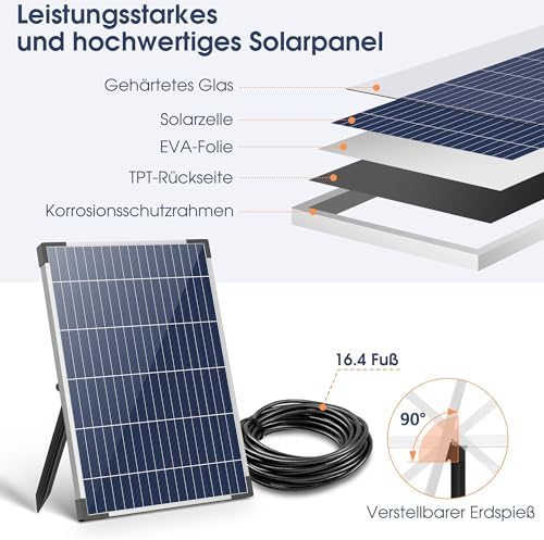 Dank des 5 m langen Kabels der Solarbrunnenpumpe von Biling können Sie das Solarpanel mühelos an sonnigen Standorten platzieren. Der 90° drehbare Halter passt sich verschiedenen Anforderungen an und macht die Installation schnell und unkompliziert. profitieren Sie von einem Jahr Garantie – bei Fragen stehen wir Ihnen jederzeit zur Verfügung.