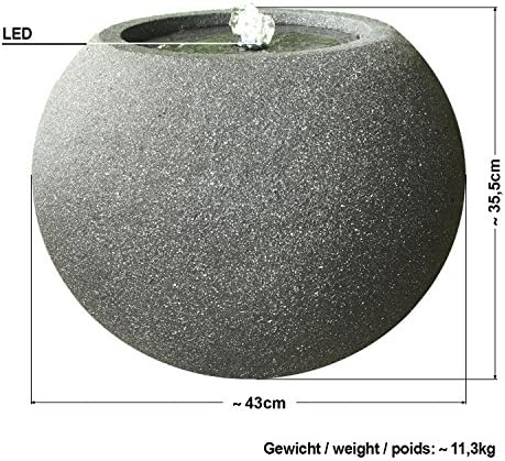 Der wassersprudelnde Gartenbrunnen überzeugt durch seine harmonisch gestaltete Kugelform in ansprechender Steinoptik. Diese stilvolle Gestaltung wertet nicht nur Garten- und Terrassenbereiche auf, sondern fügt sich auch perfekt in Wohnzimmer, Esszimmer und andere Innenräume ein. Der Brunnen wird zum echten Hingucker und verleitet dazu, sich mehr Zeit in seiner Nähe zu verbringen.