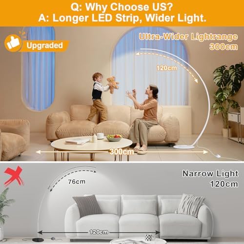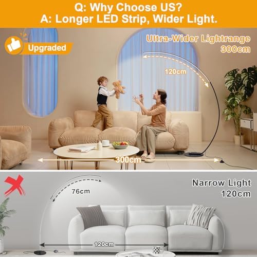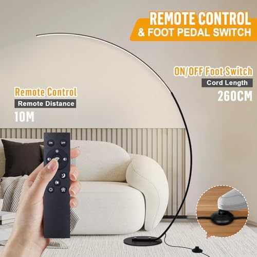 Die moderne Bogen Stehlampe kombiniert schlichte Eleganz mit praktischer Funktionalität. Mit einer Leistungsaufnahme von nur 25W und einer beeindruckenden Helligkeit von 1800 Lumen, entspricht sie einer herkömmlichen 100 Watt Glühbirne. Dank ihrer fortschrittlichen LED-Technologie ist sie extrem energieeffizient, wodurch Sie nicht nur den Geldbeutel, sondern auch die Umwelt schonen.