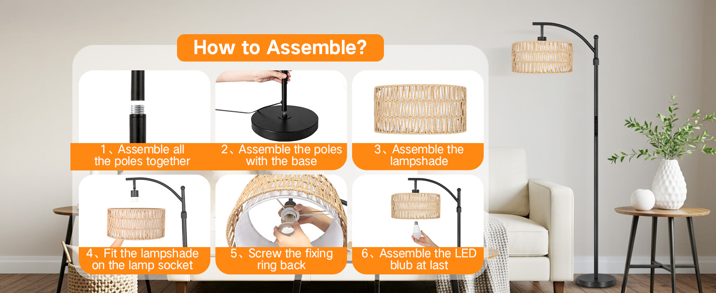 Unsere Stehlampe im Boho-Stil ist mit einem doppelten Lampenschirm ausgestattet, der Rattan und Leinen kombiniert und damit drei verschiedene Display-Effekte ermöglicht. Die abnehmbaren Lampenschirme können individuell kombiniert werden, sodass Sie Ihrer Wohnung im Vintage-, traditionellen oder modernen Stil einen einzigartigen Akzent verleihen können.