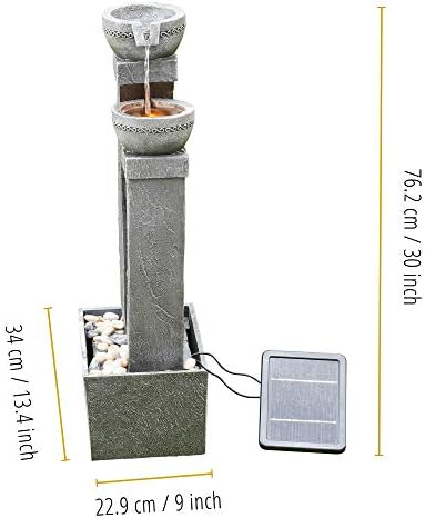Erleben Sie die harmonische Verbindung von Wasser und Licht mit unserem einzigartigen Solarbrunnen. Mit seinem ansprechenden griechischen Schiefer-Design fügt er sich nahtlos in jede Gartengestaltung ein und wird zum Blickfang in Ihrem Außenbereich. Die Kombination aus der oberen und unteren Schüssel schafft nicht nur eine visuelle Attraktivität, sondern sorgt auch für beruhigende Geräusche, die eine entspannende Atmosphäre fördern.