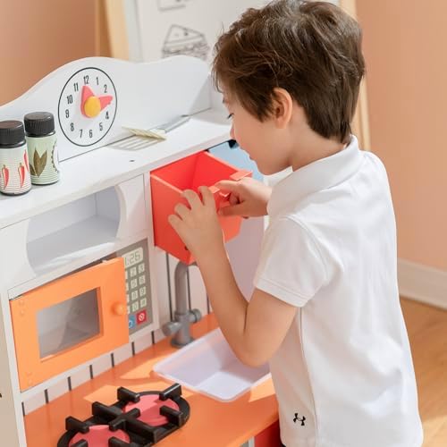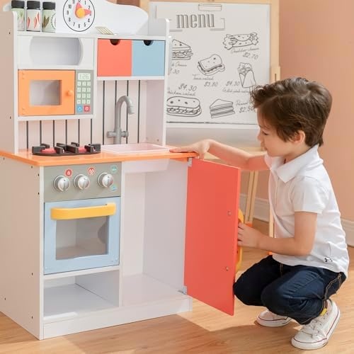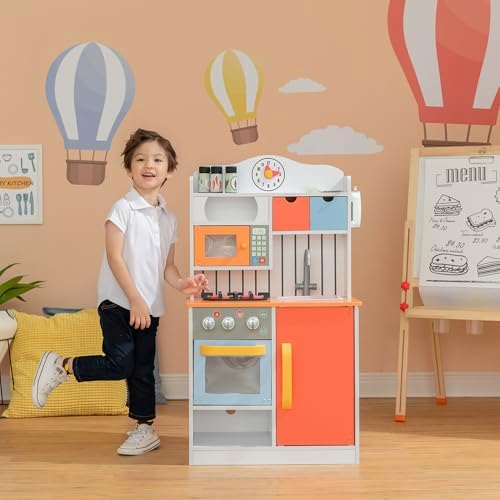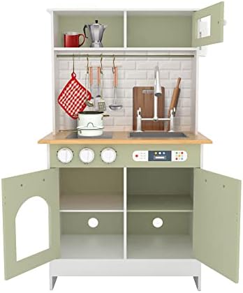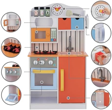 Mit dieser klassischen Holzspielzeugküche verbinden Sie Spielspaß mit Lernmöglichkeiten. Lassen Sie Ihr Kind in die Welt des Kochens eintauchen und beobachten Sie, wie es seine kreativen Fähigkeiten entfaltet. Diese Küche ist nicht nur ein Geschenk, sondern ein Schritt in eine Welt voller Fantasie und Abenteuer!