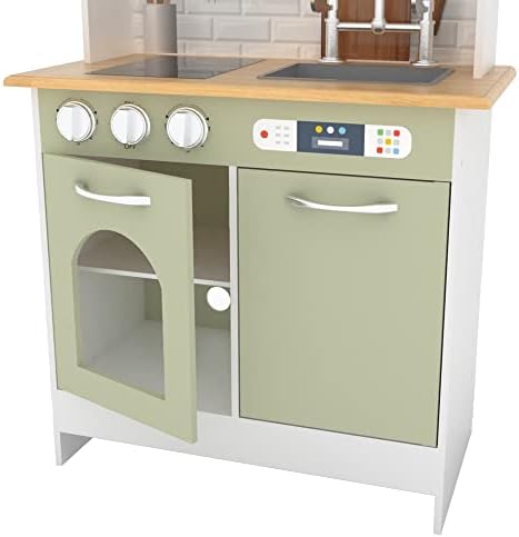 Hergestellt aus hochwertigem, umweltfreundlichem MDF, bietet diese Küchenzeile eine robuste und sichere Spielumgebung für Ihre Kinder. Dank der stabilen Bauweise kann die Küche nicht leicht umgestoßen werden und erfüllt sämtliche Sicherheitsanforderungen, was sie gleichermaßen für den Gebrauch in Haushalten mit Haustieren geeignet macht.