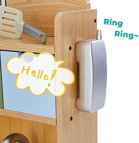 Ein besonderes Highlight der Spielküche ist das umfangreiche Zubehörset, das ein Schnurlostelefon, einen Spatel und drei Plastikschüttler umfasst. Diese Elemente fördern das imaginative Spiel und ermöglichen es Kindern, in verschiedene Rollen zu schlüpfen, was ihre sozialen Fähigkeiten und ihre Kreativität stärkt.